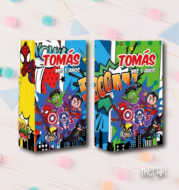 Bolsitas Candy bar de papel de 140gr, impresas full color completas de la tematica que quiers
