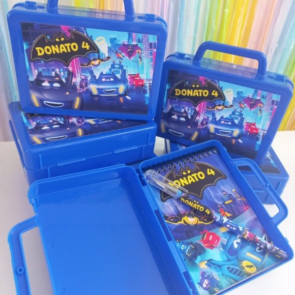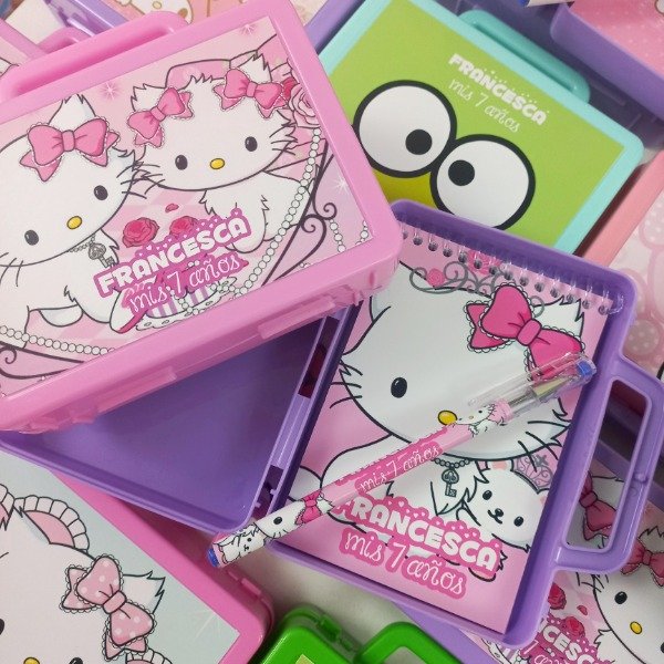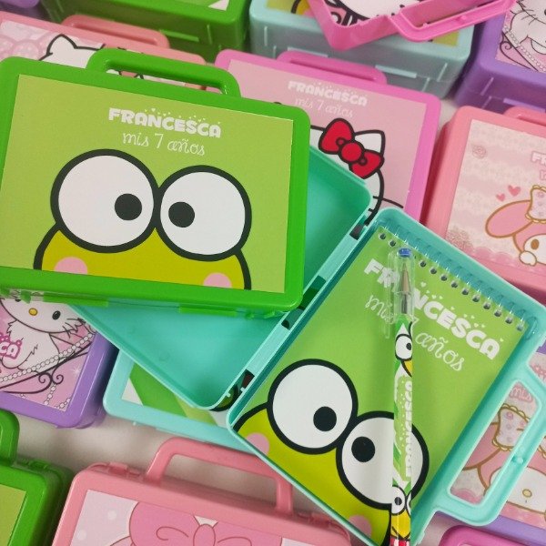 Valijtias de plastico personalizadas con anotador y lapicera de la tematica