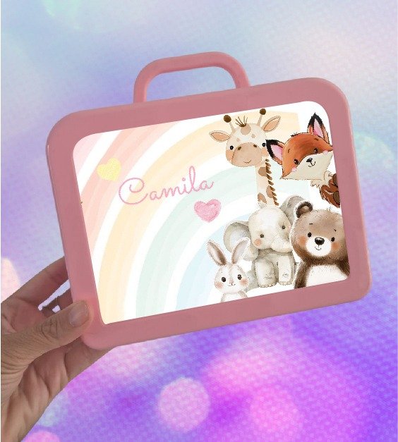 Medida de la valijita 18cm x 14cm x 6cm.